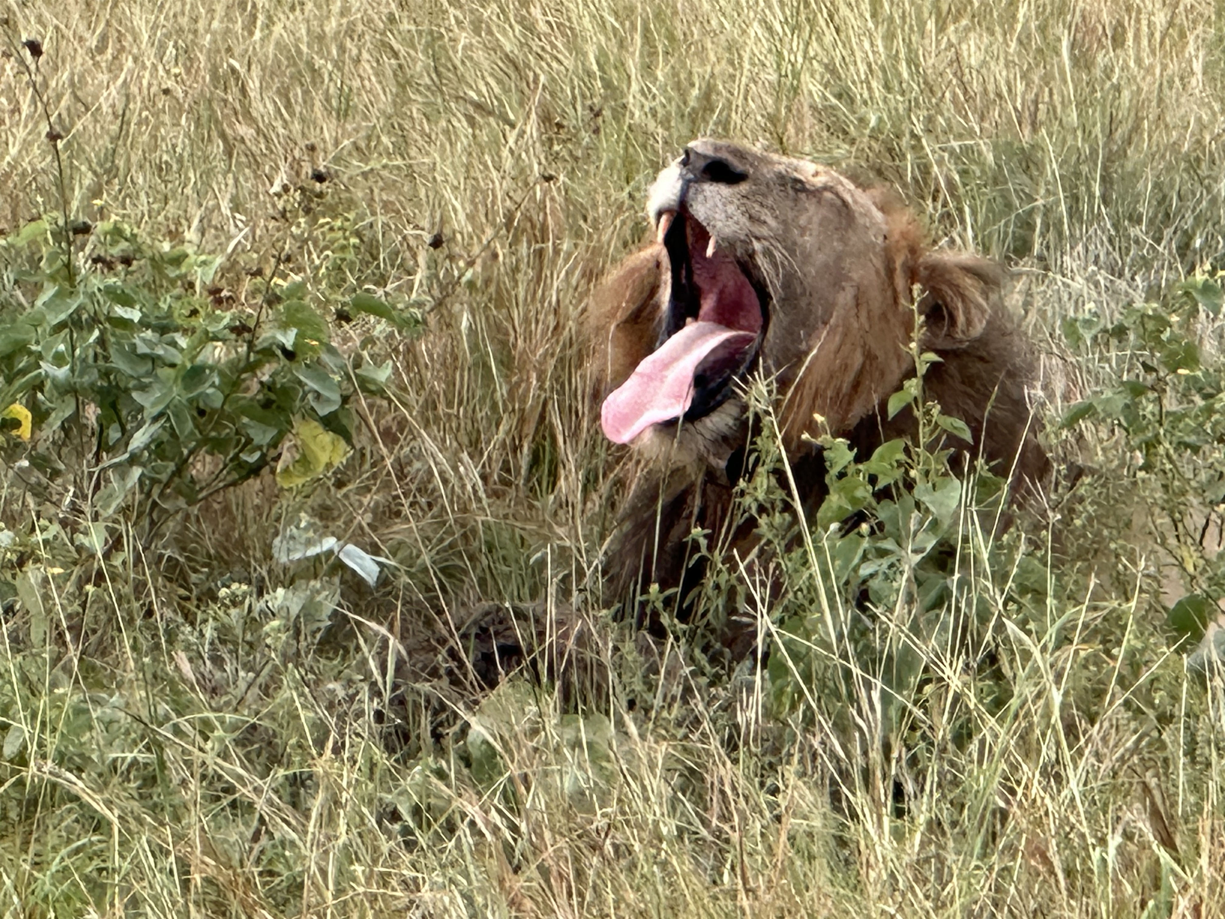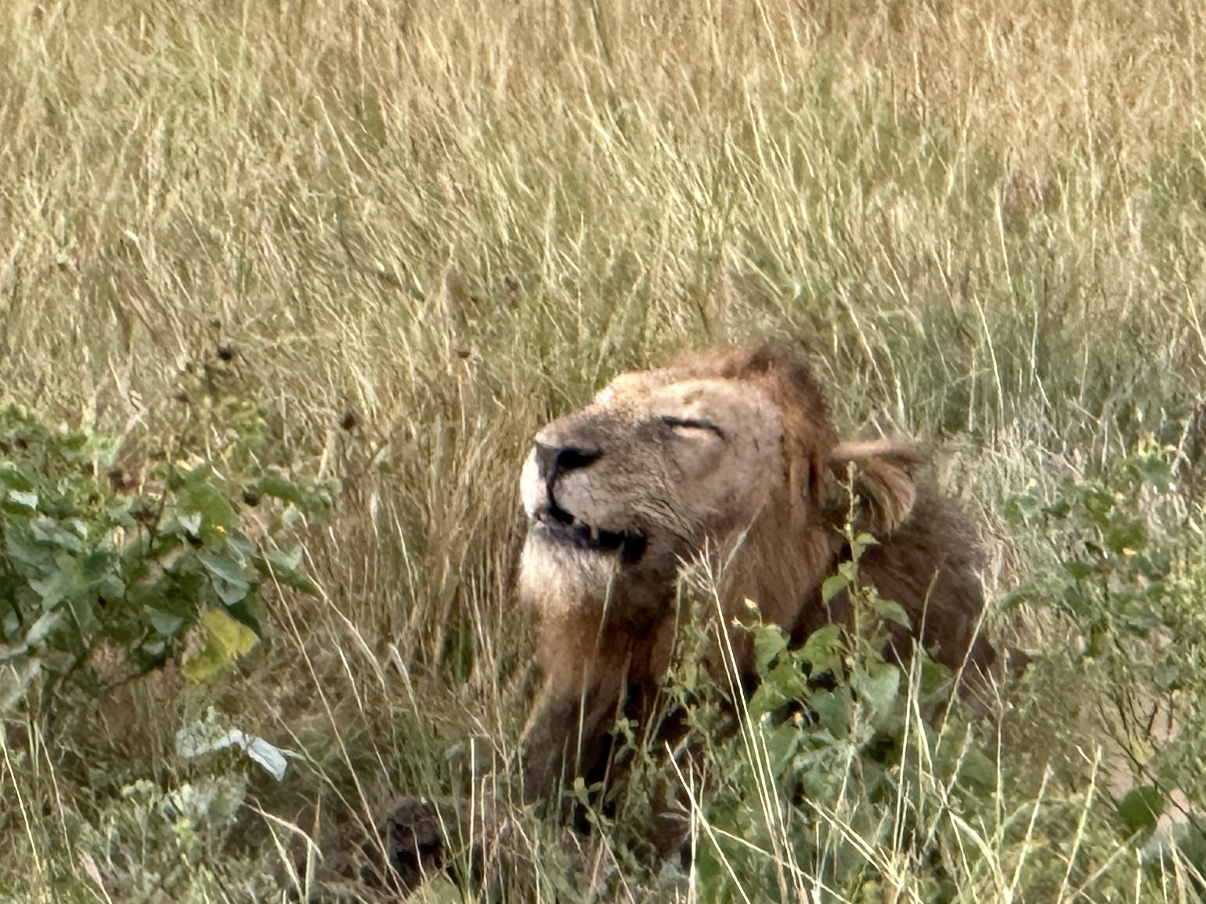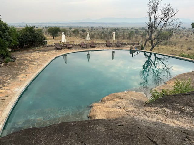 Right after I sent the last post, the staff told us a lion had been spotted. So we ran to the car and drove 20 minutes to the sighting. The lion was asleep on top of a huge rock outcrop. It lifted its head a couple of times, looked at us, and went back to sleep. Mark got a photo. It is the best we could do. Meanwhile, we learned that our flight was further delayed. It will be mid-afternoon before we depart Apoka. So, Johnathan has decided to make pasta and we are thinking about swimming, giving Bob another scratch and enjoying the view.
