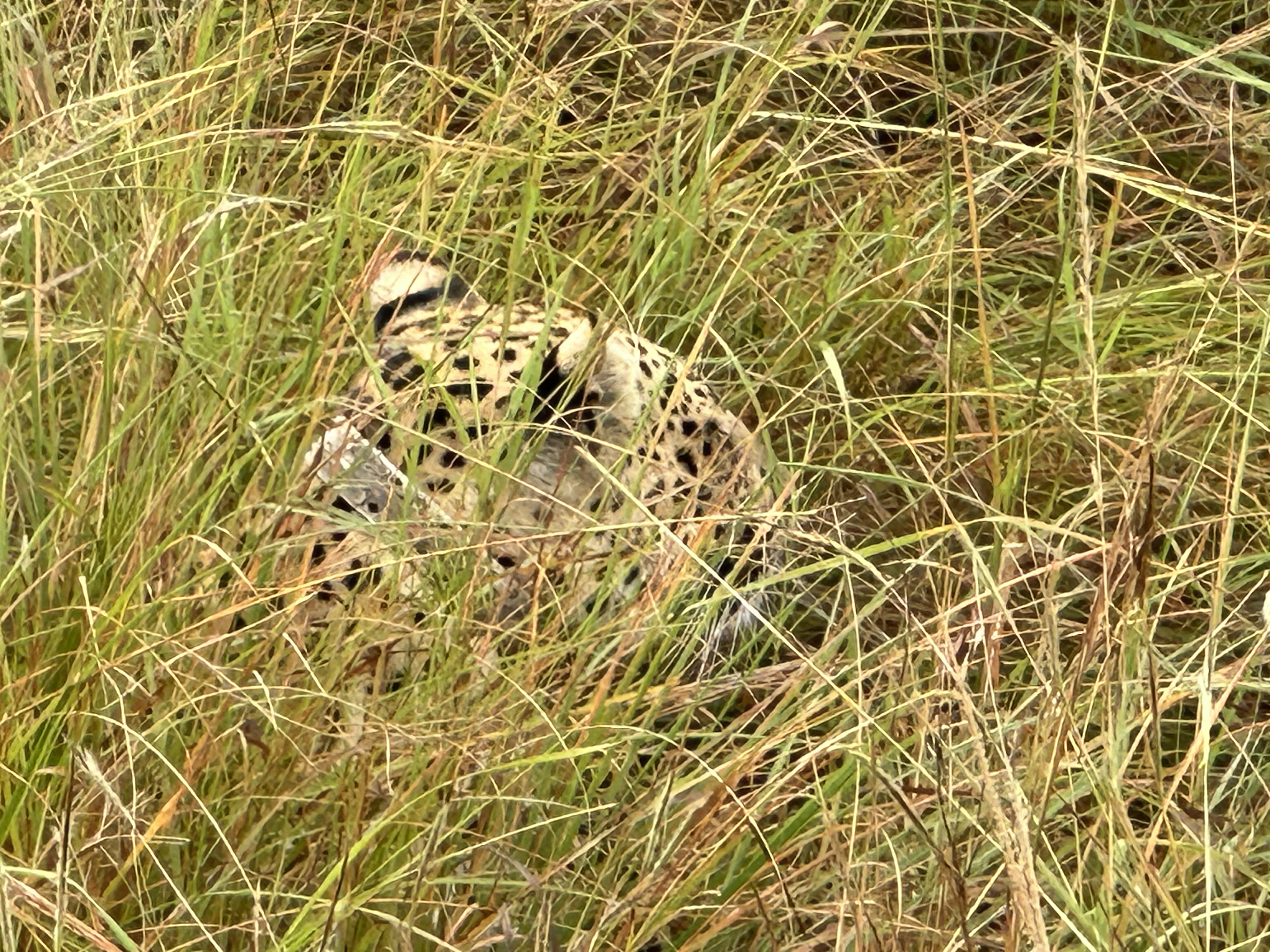 The grass was quite tall. The tracker did not tell us what he was looking for. He just kept using his machine and telling the driver when, how much, and where to turn. Finally he had the vehicle stop and told us the animal was 5 feet in front of us. None if us could see anything but grass. Finally the animal moved a tiny bit and we could just make out a leopard. It was very exciting to see it through the dense grass. That was a real treat.
