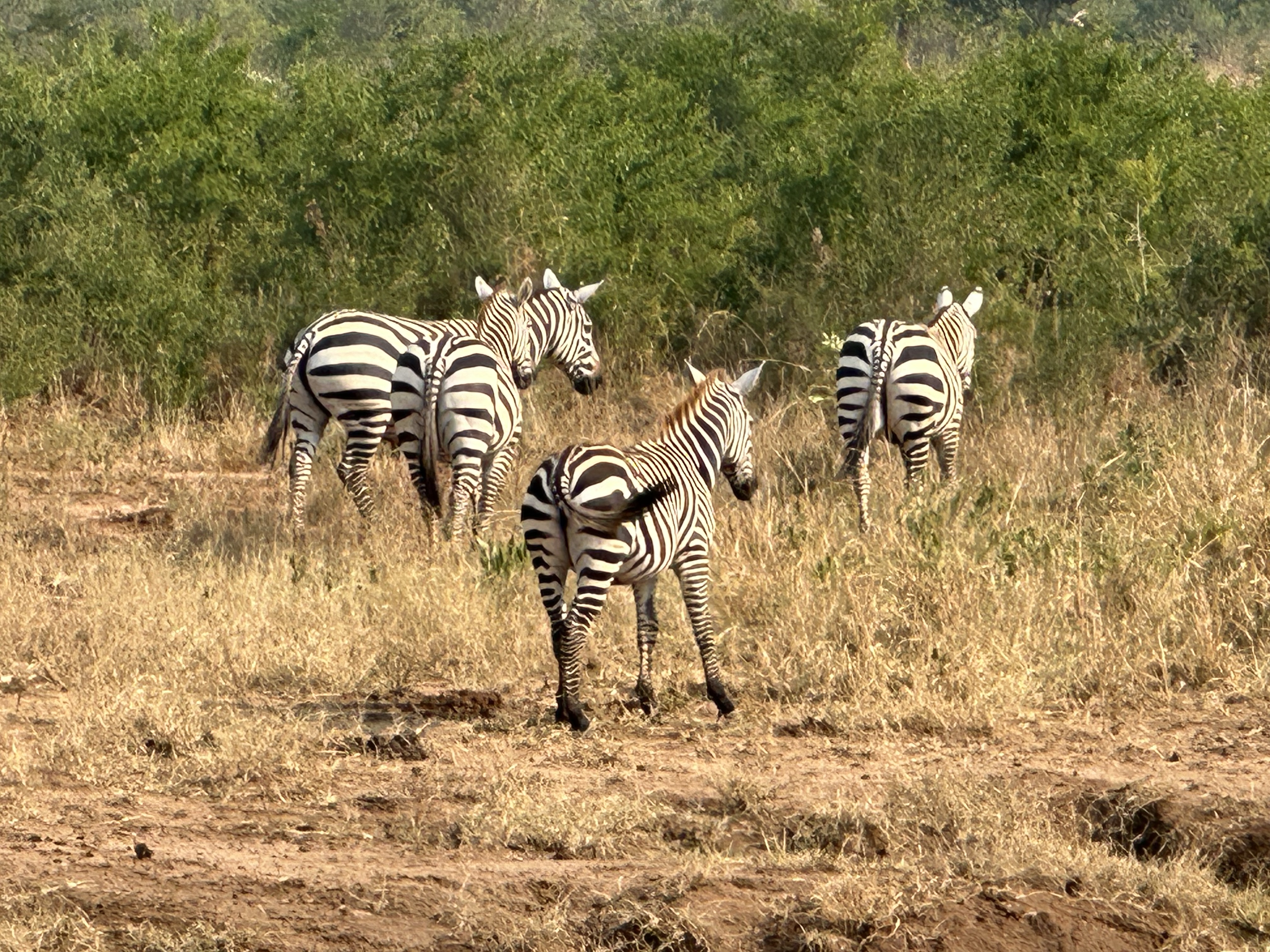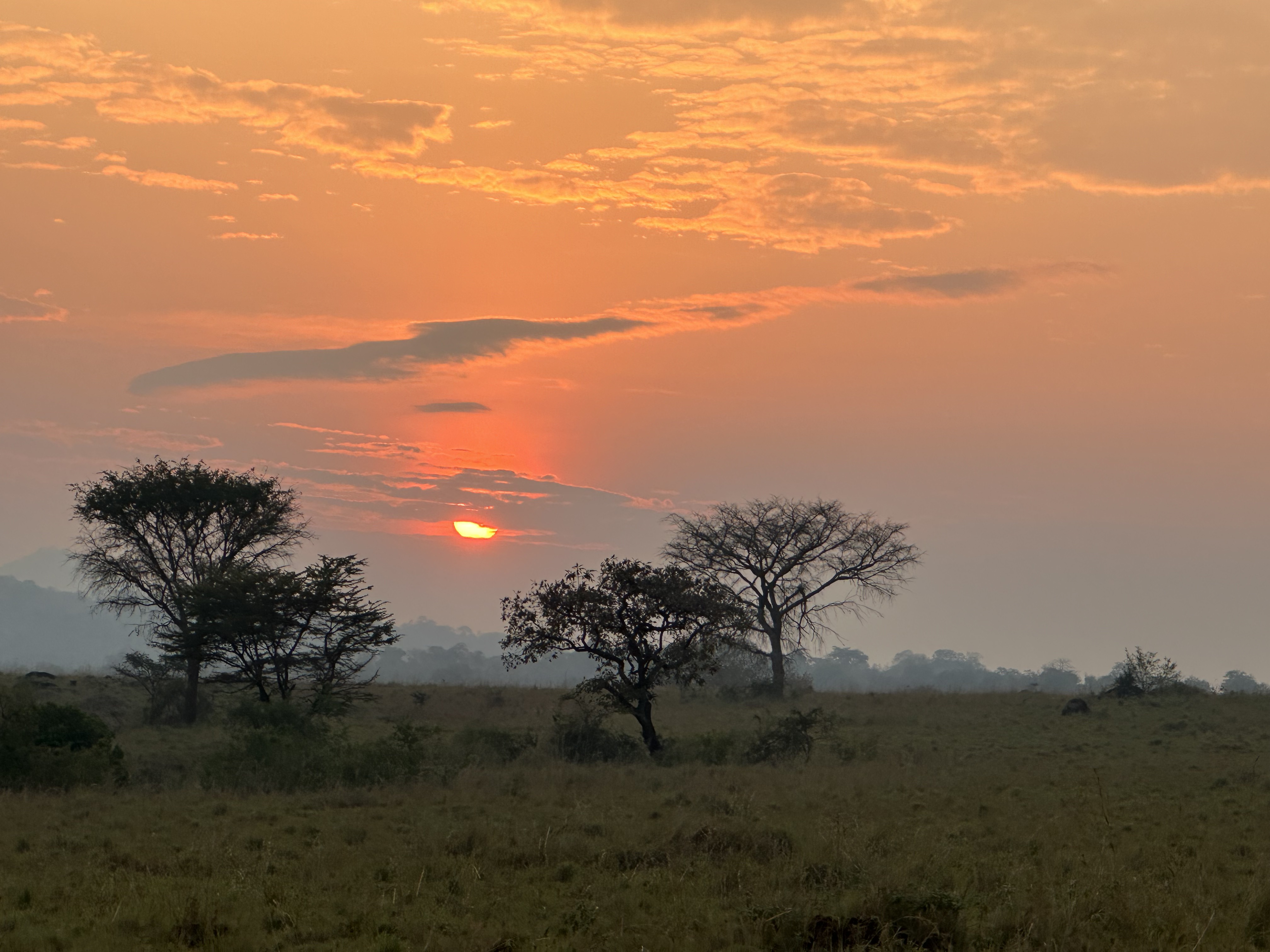 The flight to Kidepo was an uneventful 2.5 hours through continuous haze, diagonally from SW to NE Uganda. The drive to Jonathan’s Kidepo camp, Apoka, was about 25 minutes. Once there we settled into our very nice bungalow, complete with a normal, indoor shower and an outdoor bathtub. There was even a swimming pool.