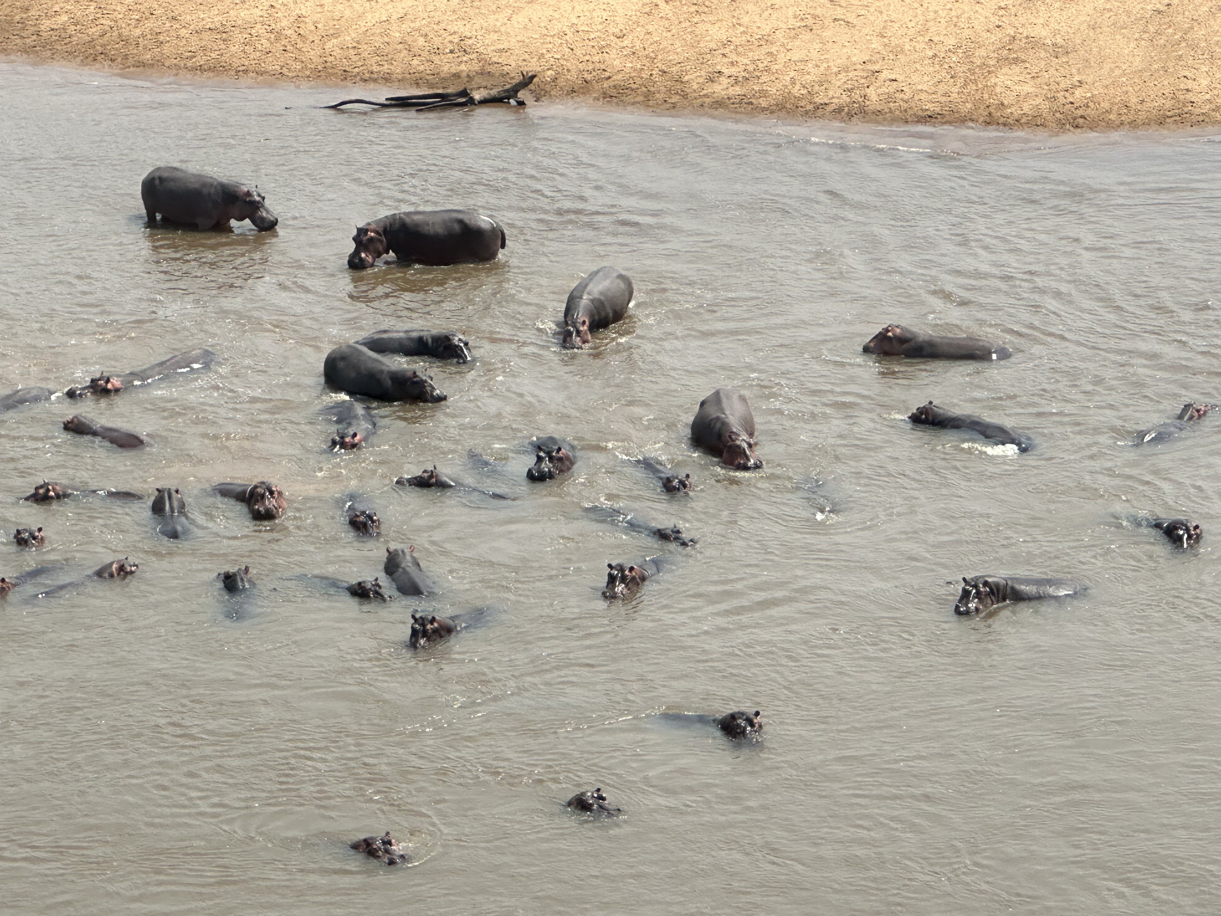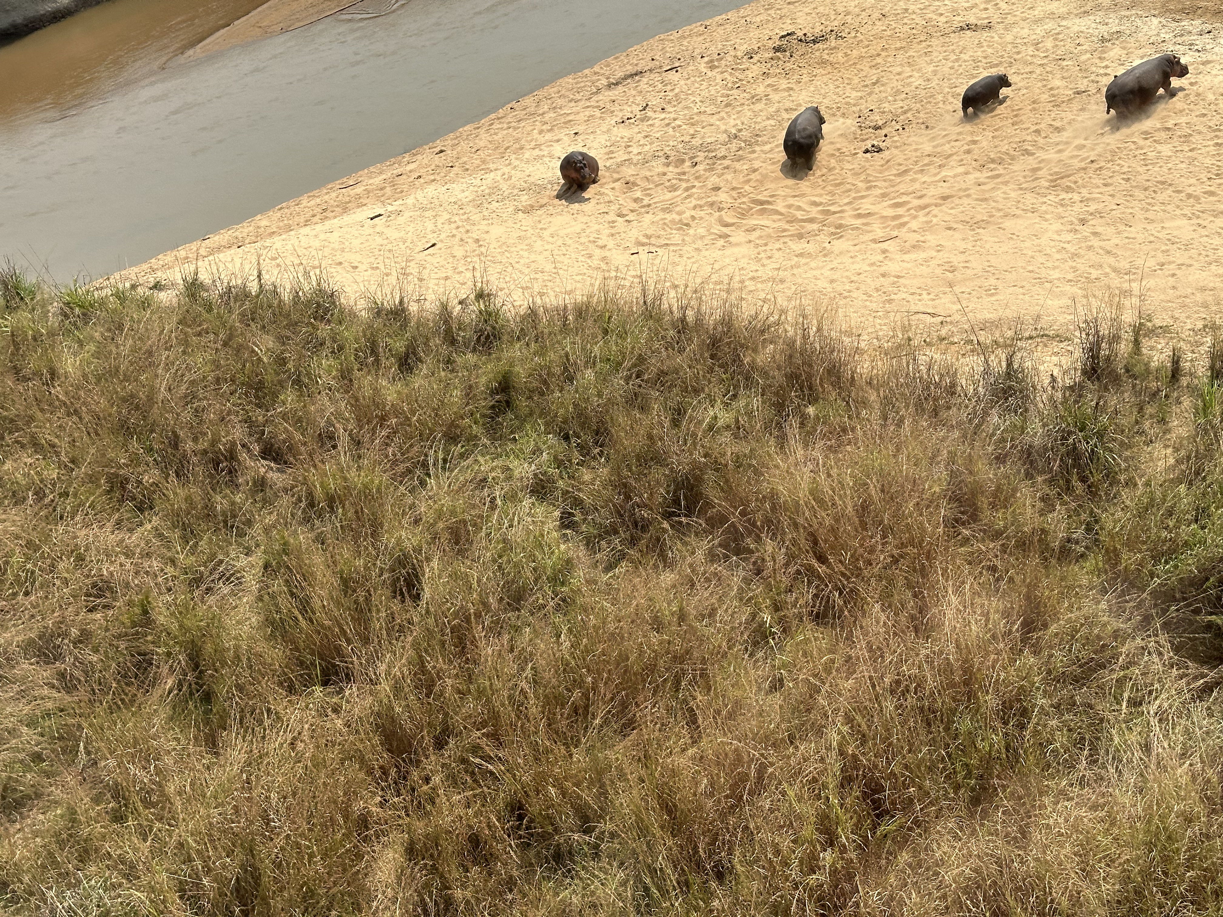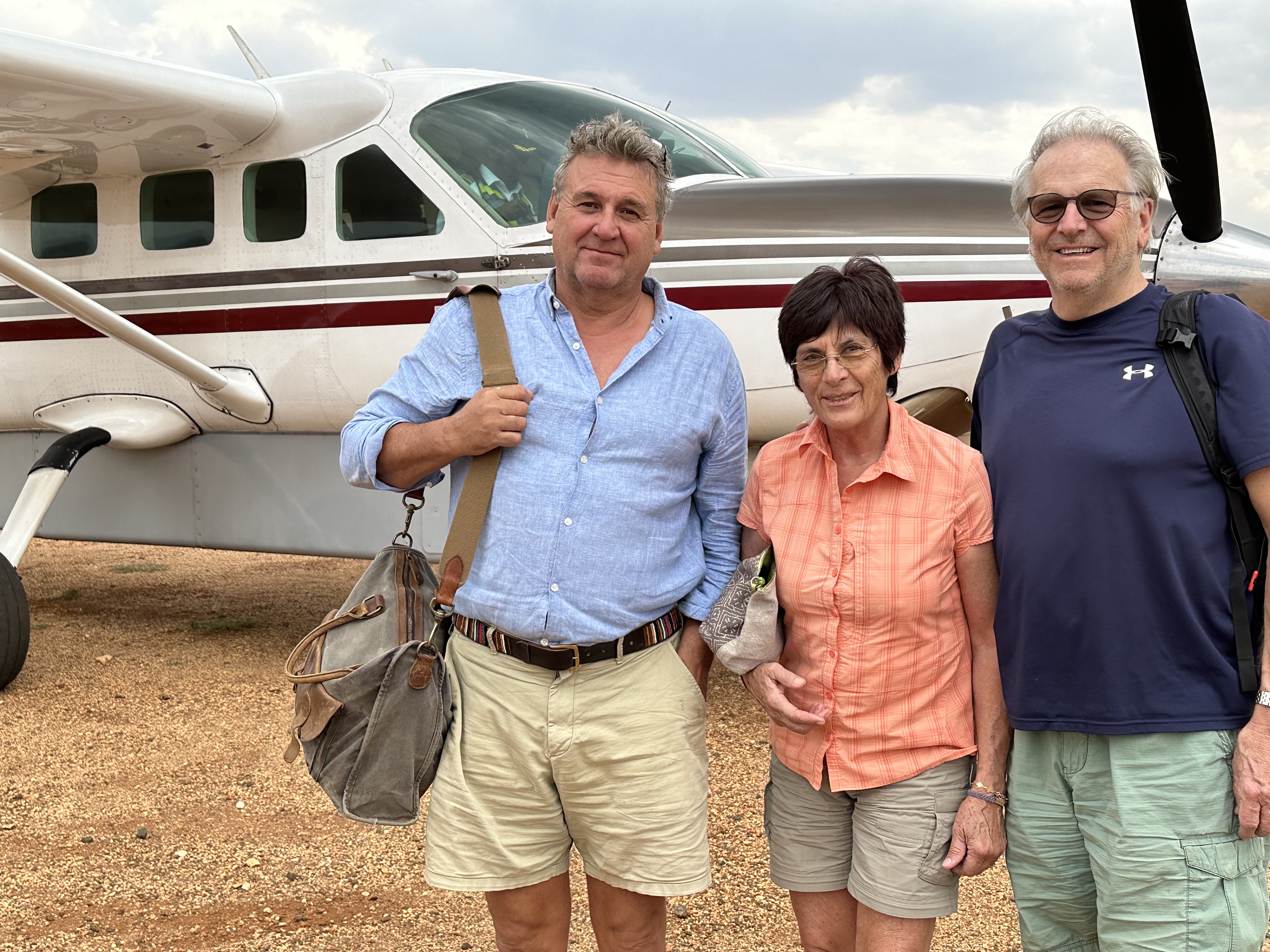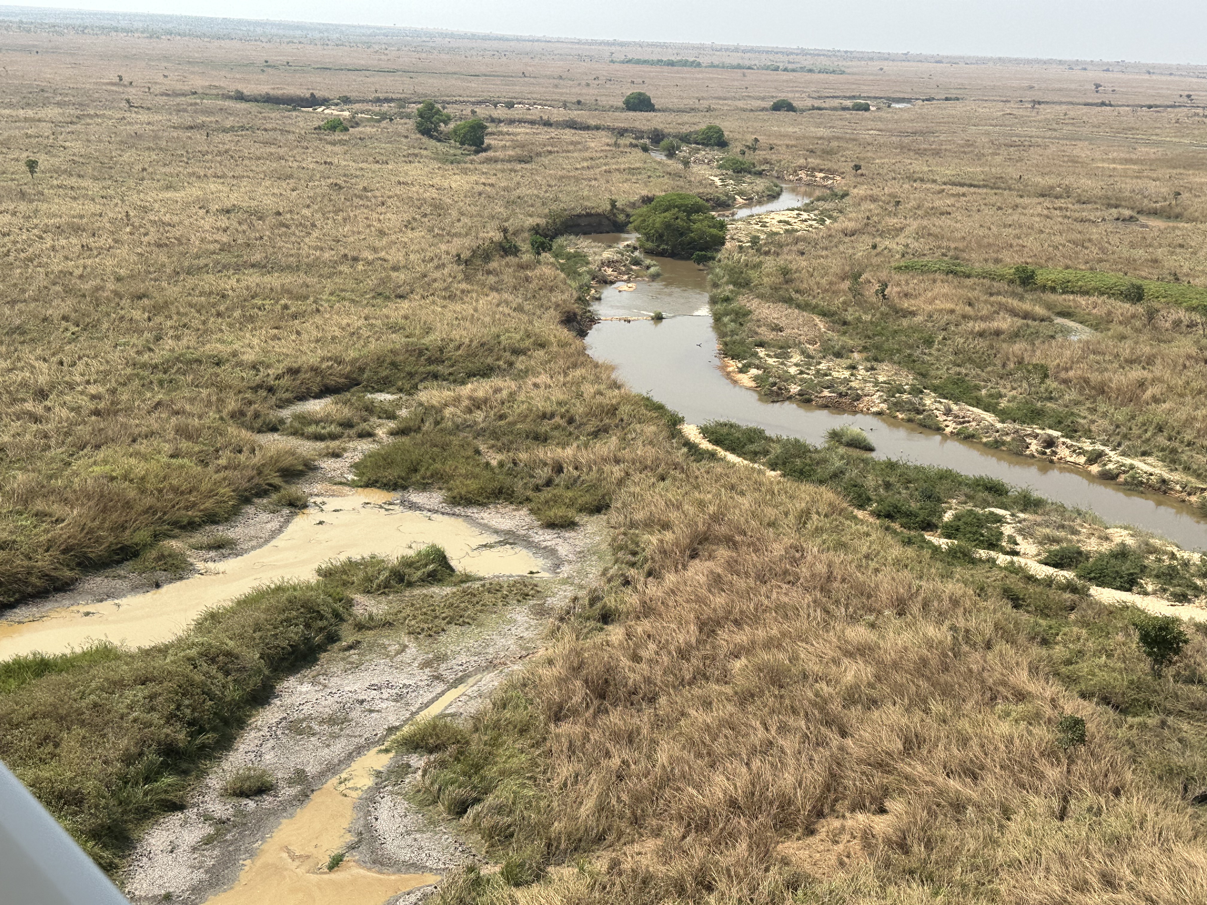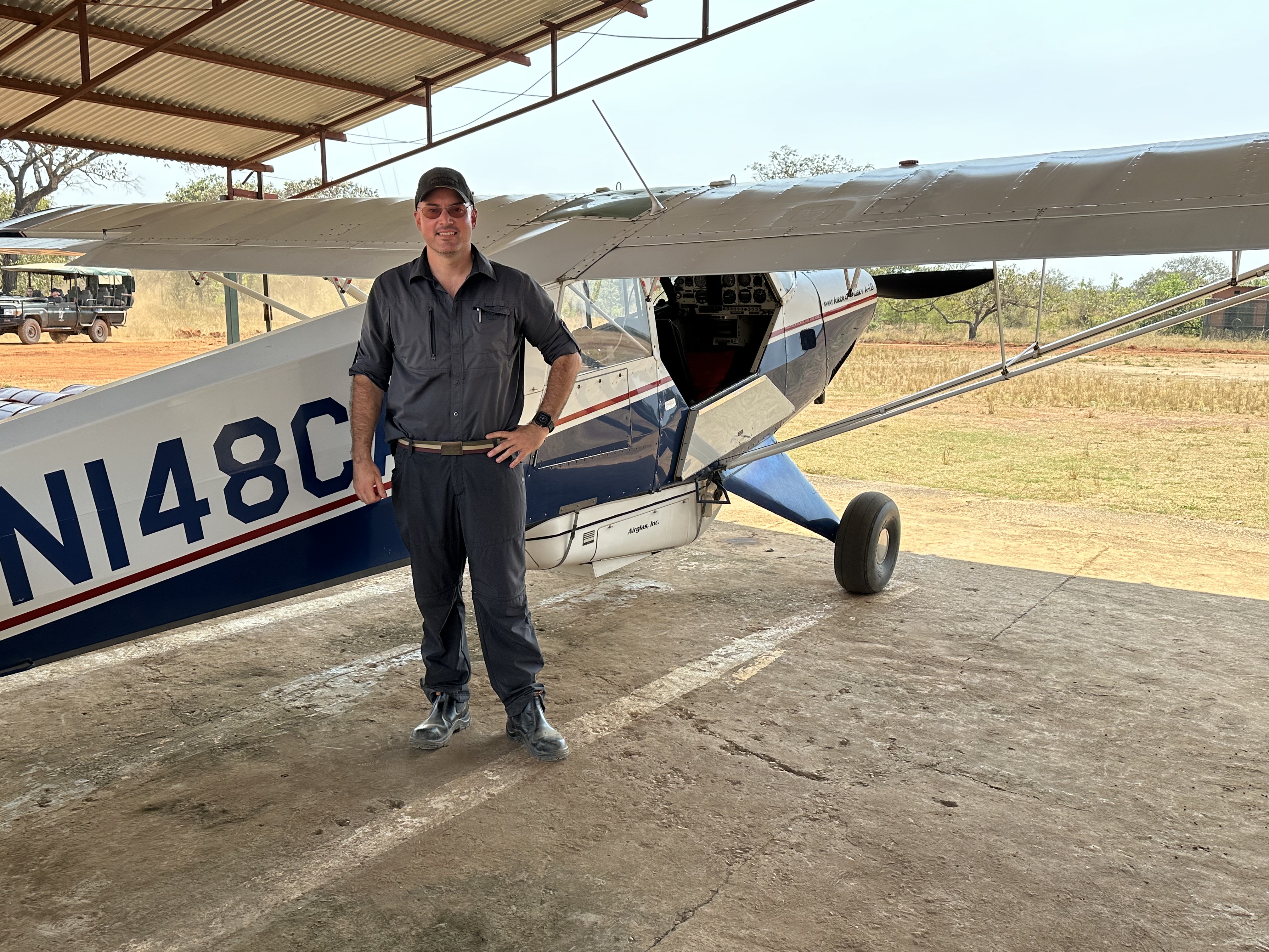 Then I got to ride in a Husky with another pilot, Trevor, who oversees the aviation department. We were in the air about 50 minutes and were hoping to find giraffe but had no luck. We did see 4 adult elephants and babies with them. Couldn’t tell what sort of elephant they were. From the air the tall grass does not look so overwhelming, and the scenery opens out into the savannah it really is. Back at the airstrip, I traded places with Mark. Unfortunately, he had no better luck than I had.
