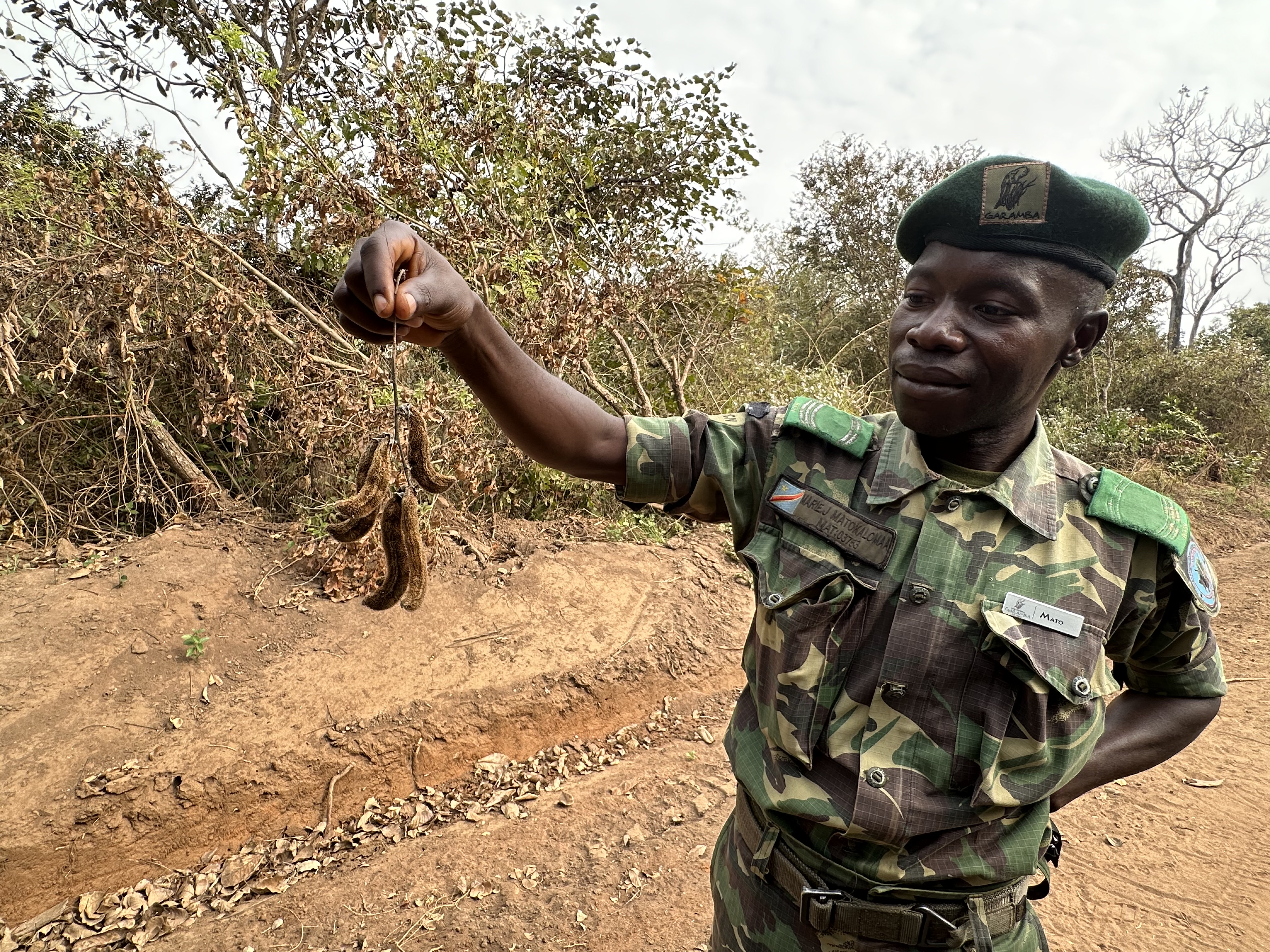 Martin found this African Clawed frog under a leaf and showed it to us. It was soft and spongy. Mato, the Congolese English speaking military ranger who accompanied us everywhere we went, picked this plant for us to recognize and not touch. It is a bit like fiber glass and very hard to get off clothes and skin.