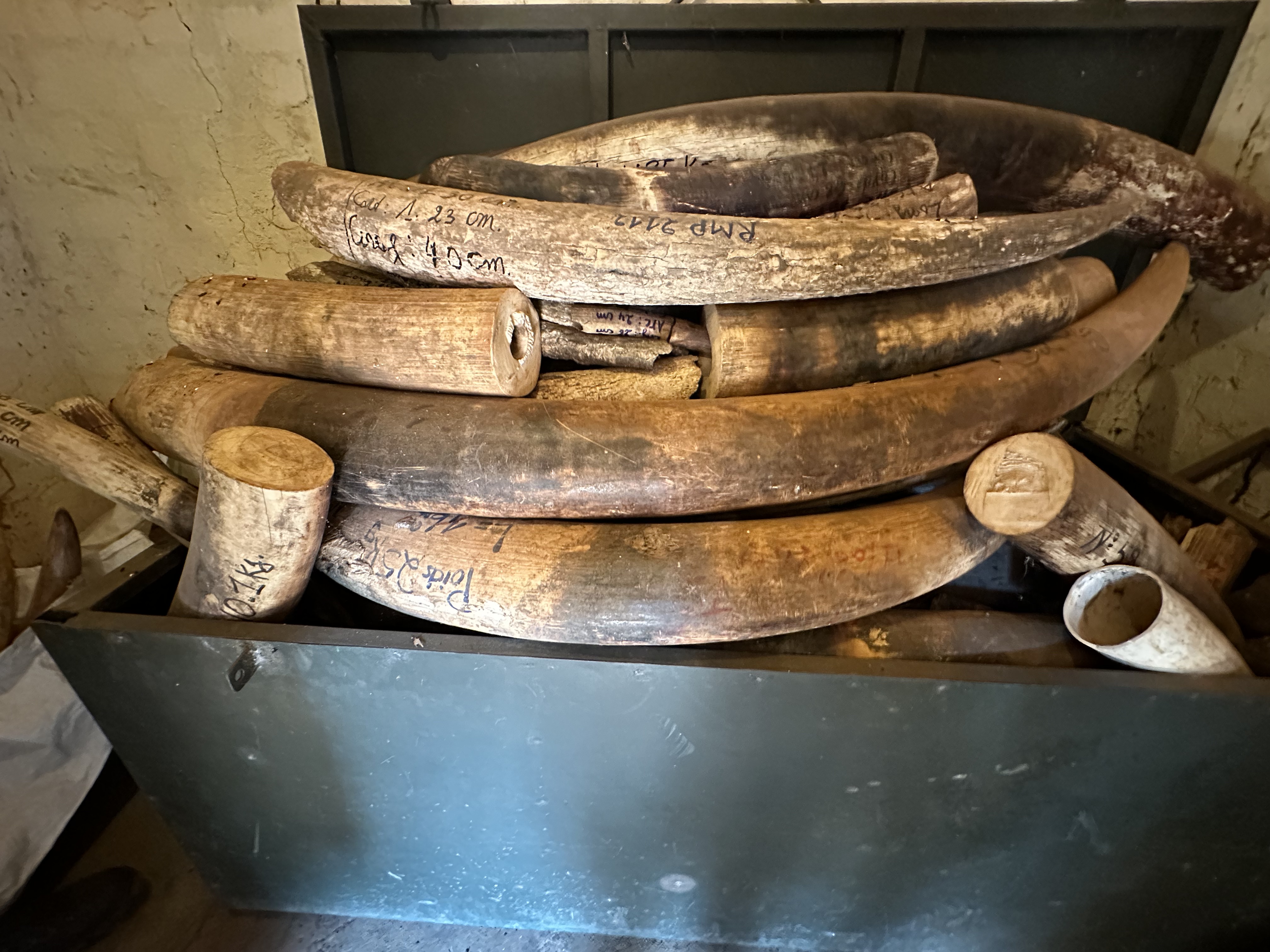 There are also 90 soldiers from the regular army and dog units that track poachers. Gold mining is a huge problem in 3 areas near the park and the soldiers try to control the miners from poaching. We also visited the small storage building where illegal ivory tusks, and pangolin scales are stored. The stash represented over 50 killed elephants. Very depressing to see so much devastation.