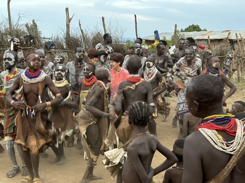Wow. It’s February already. Our one whole day in Lale’s Camp. We left camp at 6:15 to visit the Hamer people in their village called Dus, about 20 minutes away. They were delightful people; friendly and welcoming.