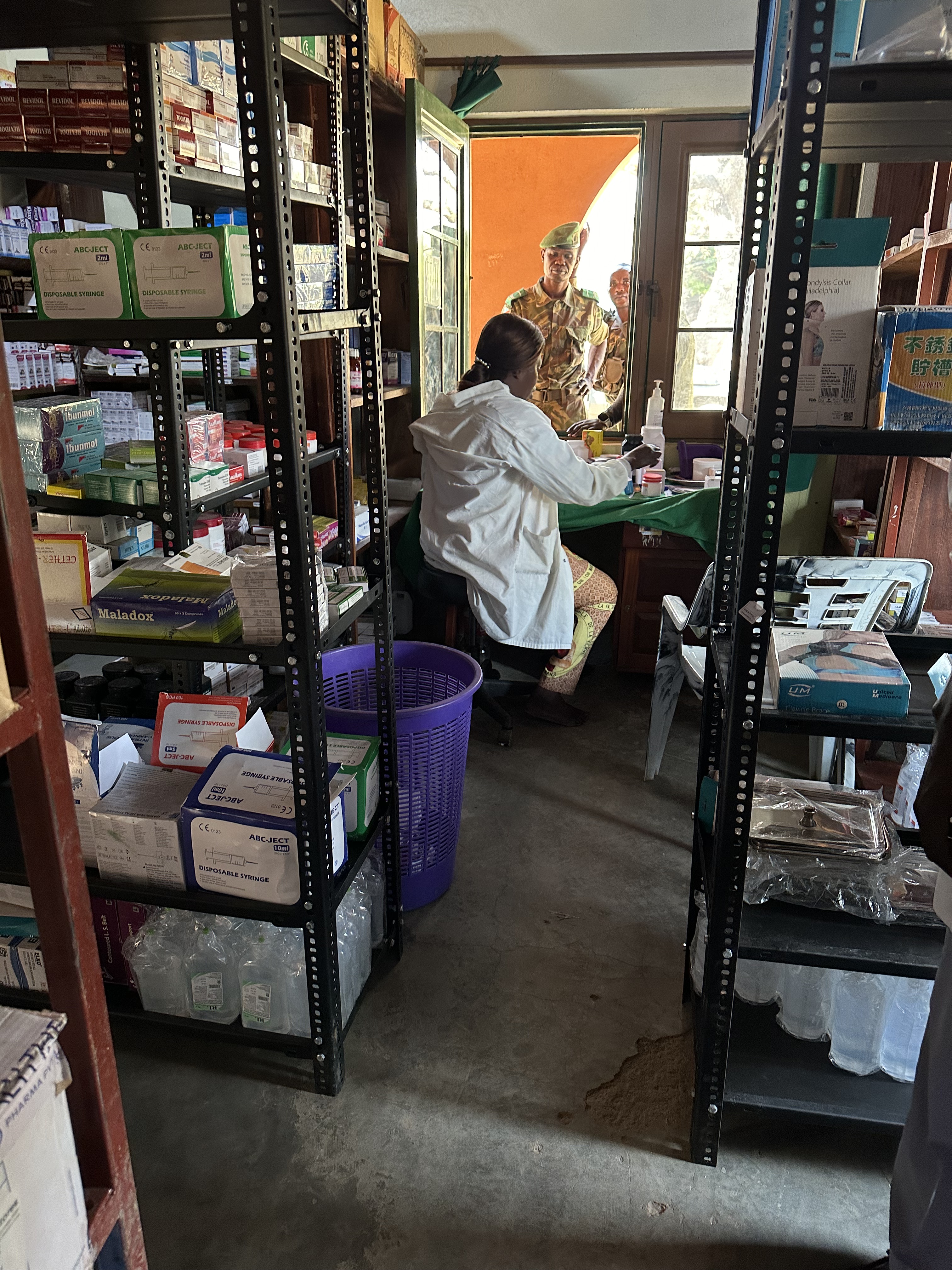 We departed Garamba National Park on the morning of the 27th after stopping at the hospital to ask the doctor about the sores on my tongue. He thought I had Candida and prescribed a mouth wash that worked almost instantly. He had also given Mark antihistamine for his heat rash and that was helping too. We got a tour of the small, 14 bed facility with one OR a small maternity ward and a pharmacy. There were 2 MDs, and a few nurses. The doctor told us there are 20 births a month in the hospital. Malaria is a big problem as he cannot get the people to use the bed nets he distributes. He gives them out and people sell them rather than use them.