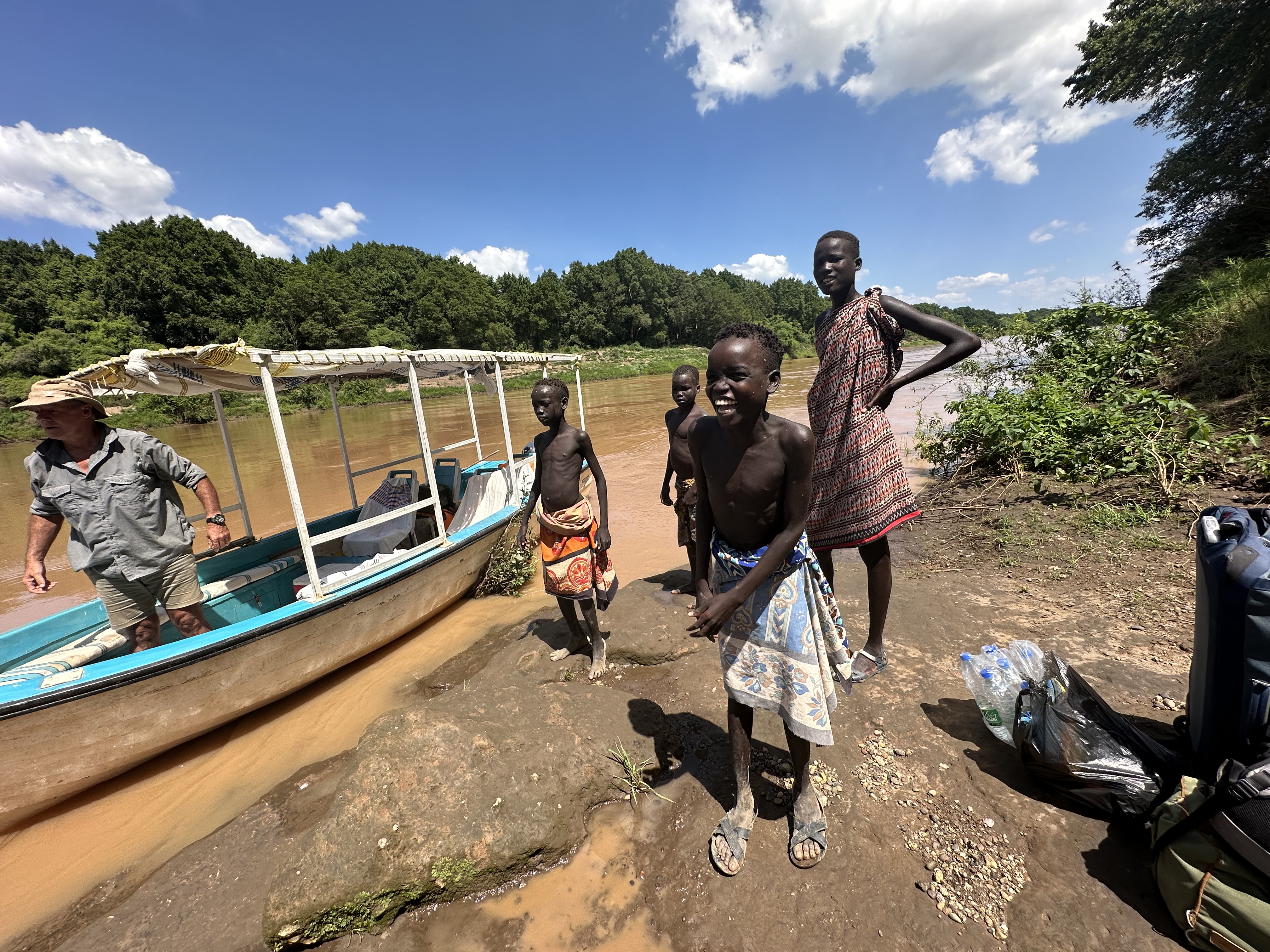 This year we started about midway down the river and spend time in a camp near the Mursi tribe. On we traveled down the hersey brown river in the very same boat as 20 years ago to a second camp to visit the Hamer and Kara tribes and we finish our travels with the Dasenach tribe in the river delta just above where we had been stuck.