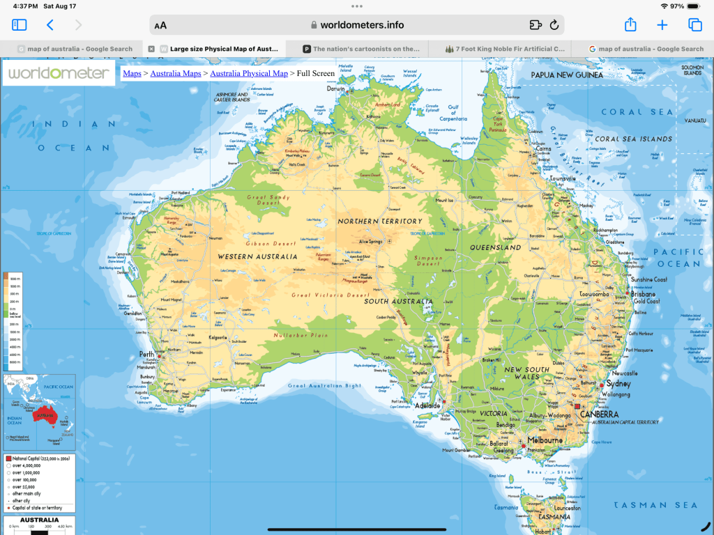 The first part of the adventure will include locations in the Northern Territory where we will learn about the Aboriginal people, their history and ancient art. Look for the area called Arnhem, slightly southeast of Darwin. We also plan to visit a special museum in Darwin that features the First Nation people.