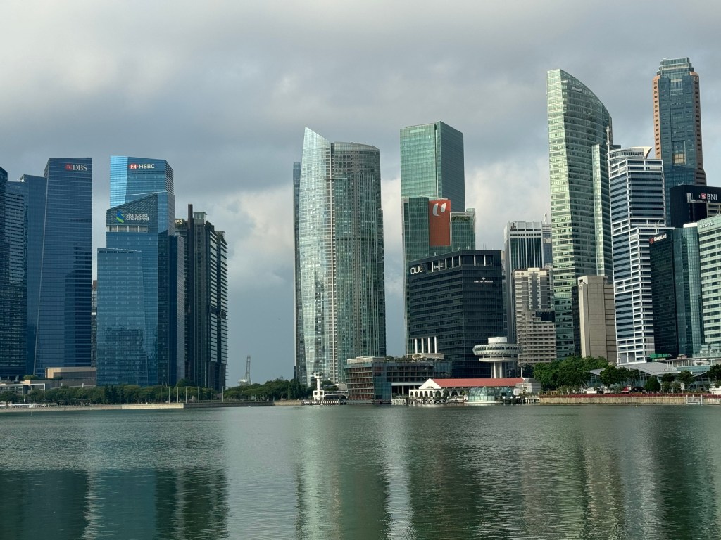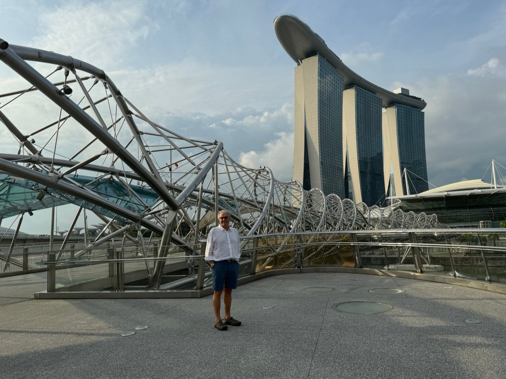 We reminisced about our first time in Singapore in 1993. It was the first stop on our honeymoon. Our big activity was afternoon tea at Raffles Hotel. It was quite a do at the time. Today, Raffles seems small and old compared to the dozens of sky scrapers we see today. Our hotel, not Raffles, is the small building in the center foreground of the image (left of the low white & red pitched roof.)