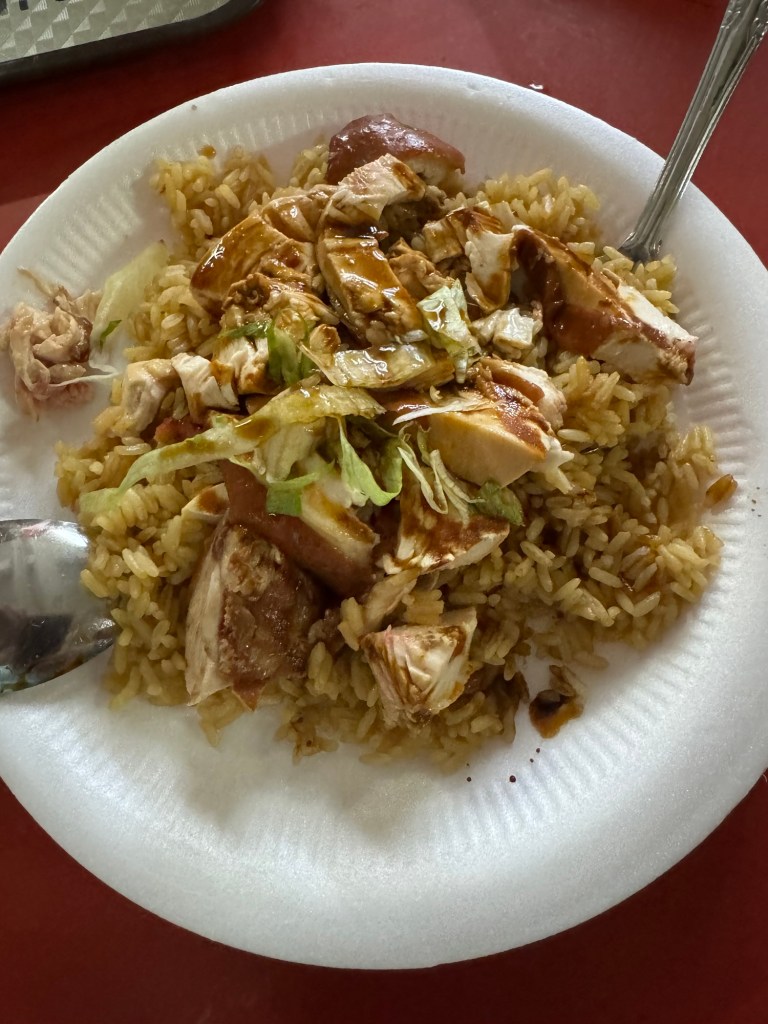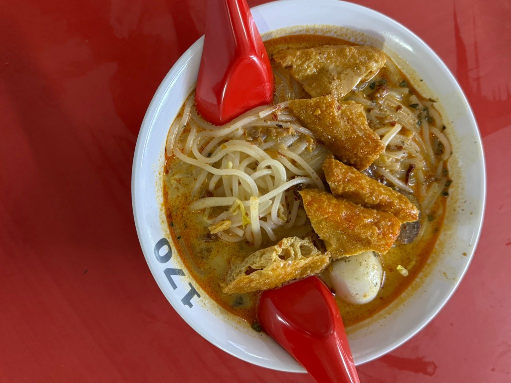 Here are some photos of what we ate in Chinatown. First there is a photo of a Chinese building near the entrance to the Chinatown Complex. The next three photos are of the suger cane juice vendor making juice and serving Mark. The first food dish is Braised chicken and rice, followed by Water cake and Carrot cake. The last dish was Laksa, a noodle soup with several condiments