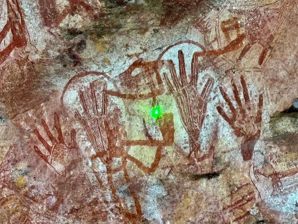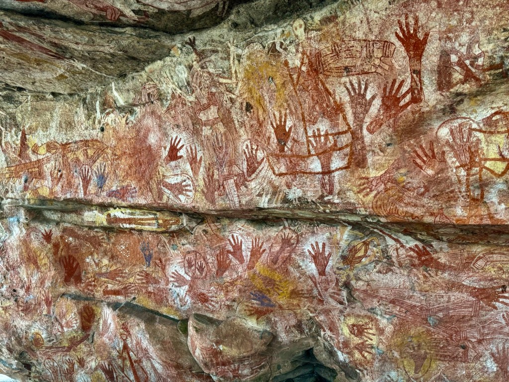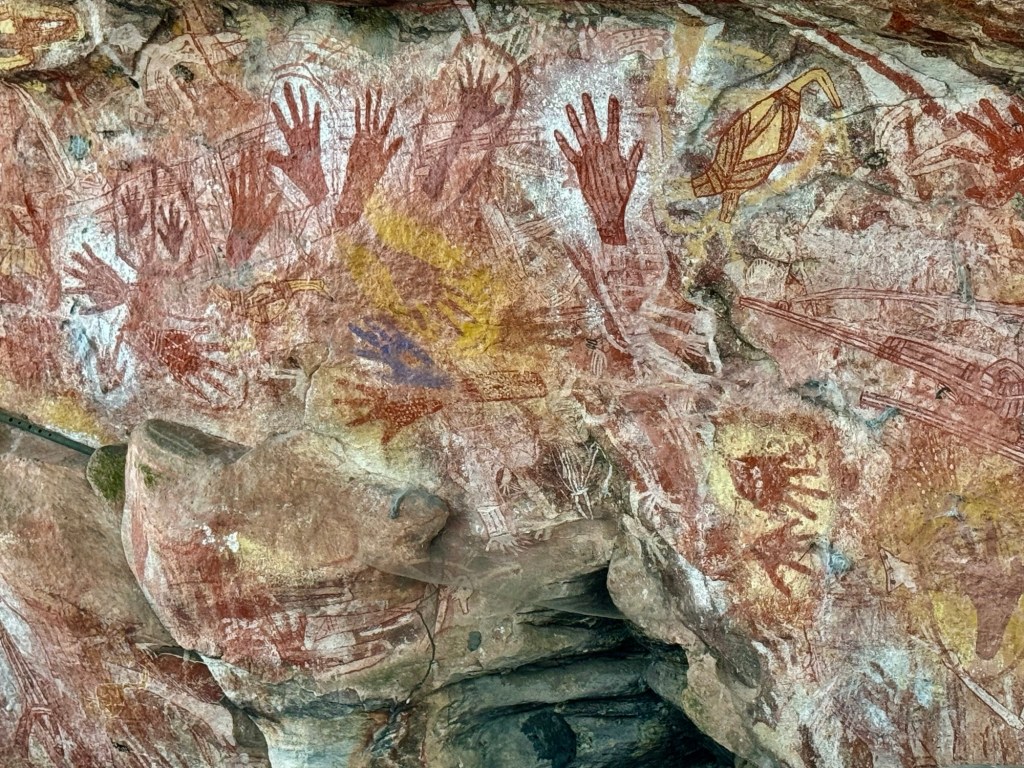 Many hands and feetThree guns + other thingsMore hands & feet; some with glovesManta Ray Hands and bodiesAn art wall More hands and feet; some with blue dye brought by EuropeansKangaroo on left