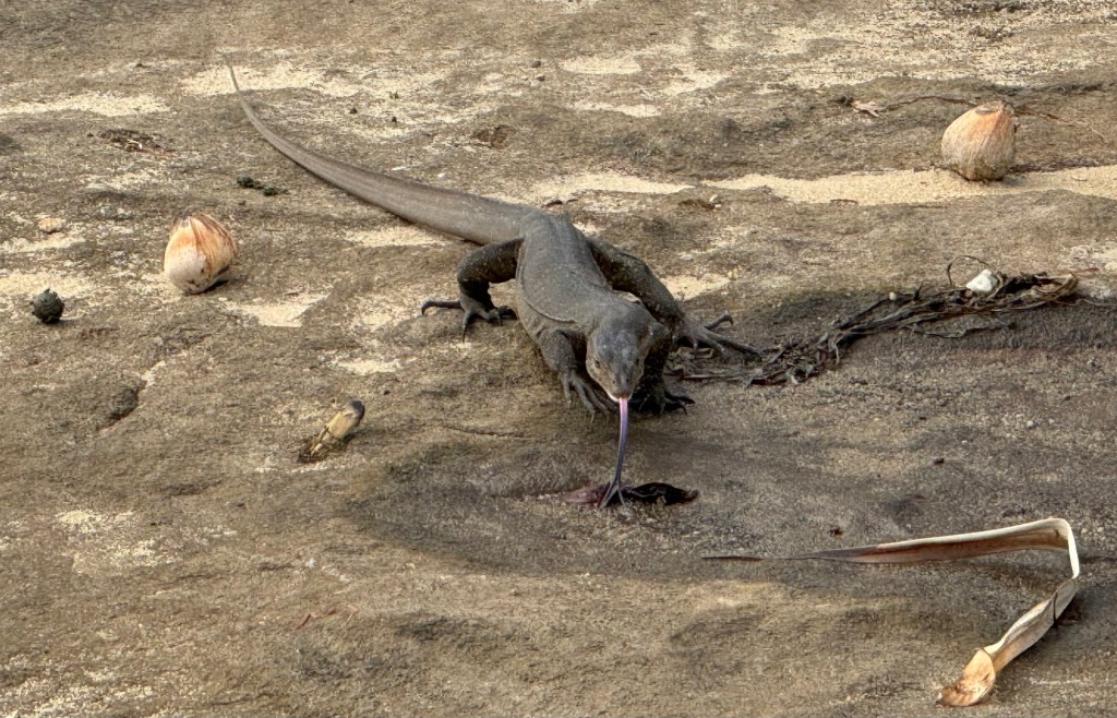 Back as camp, we had a light salad for lunch and took the afternoon to finish and publish a post, and swim in the rock pool. The water was delightful—not too cold or warm. Our bungalow is the farthest out. It was quite comfy. We also spent some time scratching the resident wart hog, Bob.