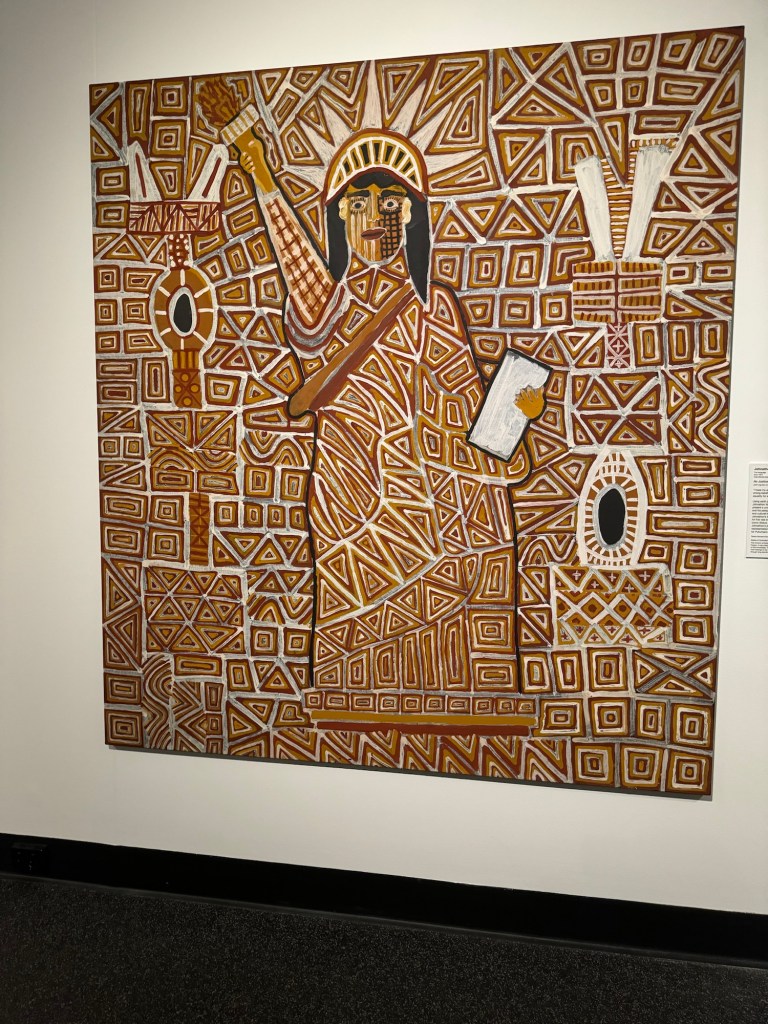 The curator, Bryony Nainby, met us at the entrance and wasted no time imersing us in aboriginal art. Here are some of the most impressive pieces we saw. Double click for a full view.