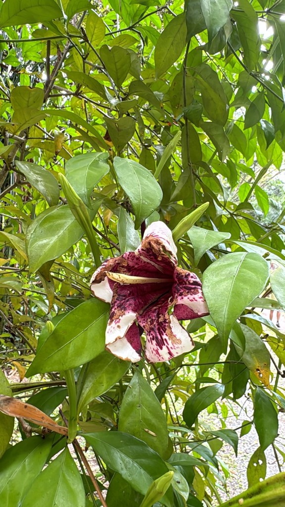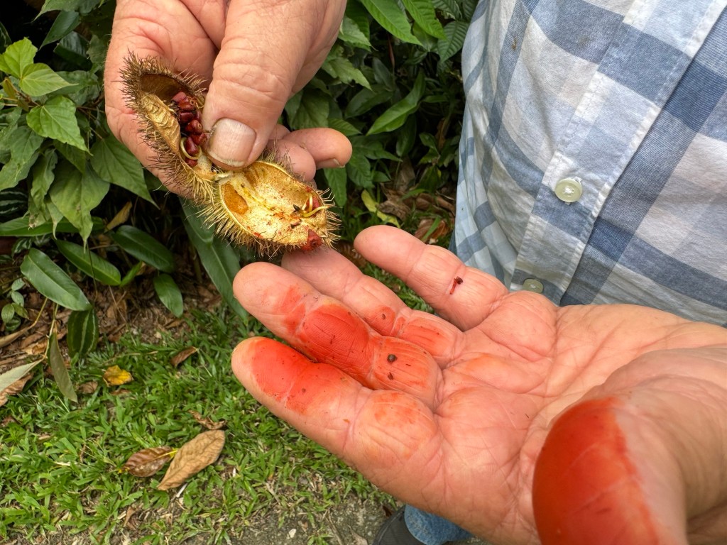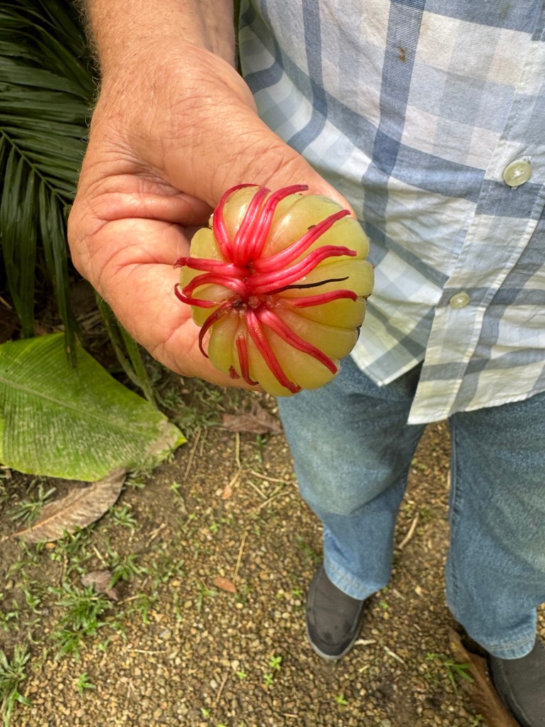 Botanical Ark entranceAlan & Susie’s homeAlan & Susie’s pondDrink of guanabana juice from guanabanaTurmeric rhizomeCostus-Ginger rhizomeTempoi-a flower that grows on trunks of treesBurmese fishtail palmChina DollHelikonia-hanging flowerCrepe gingerBitter gingerBixa-makes a natural red food coloringCacao seed makes chocolateKepel apple- makes the eater smell good