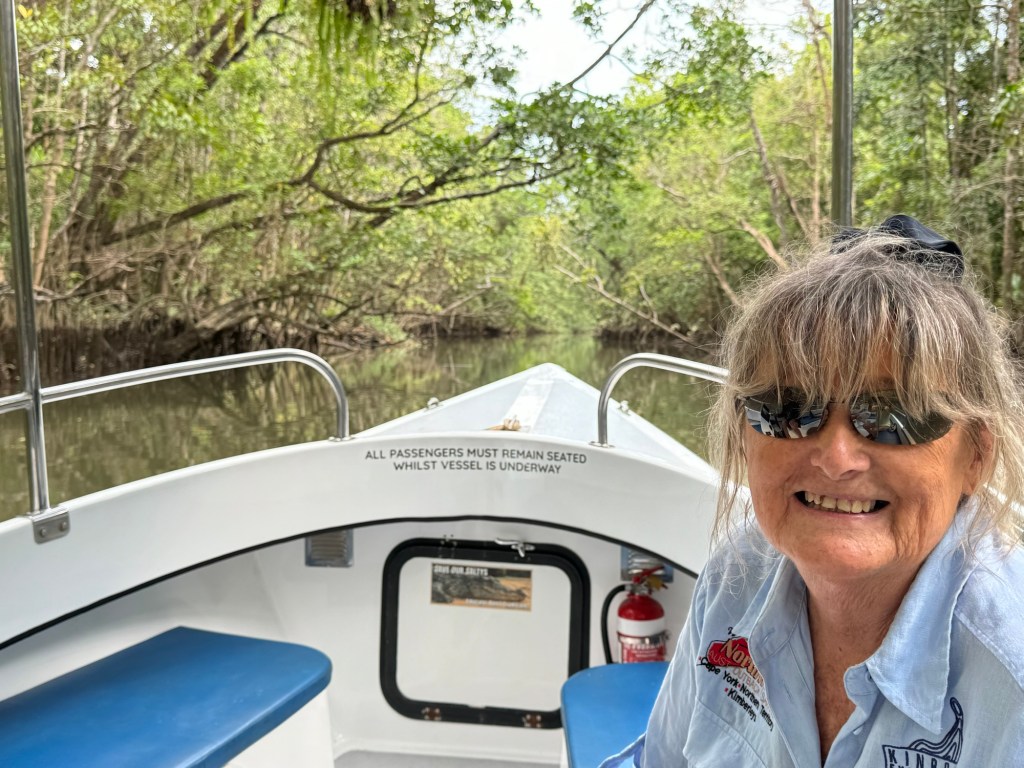 Our guide Cathy enjoying the boat rideThe Daintree River is full of mangrove trees
