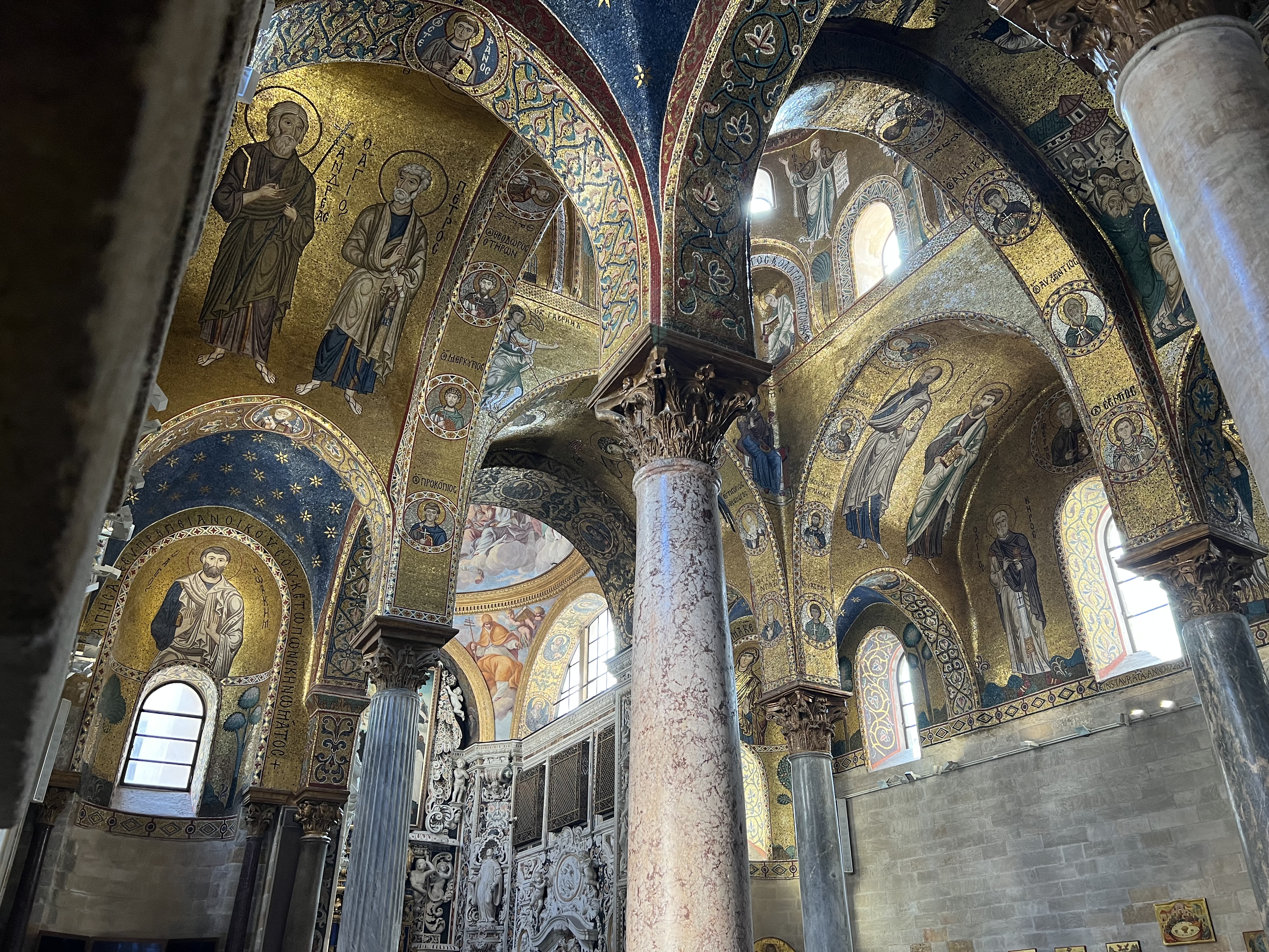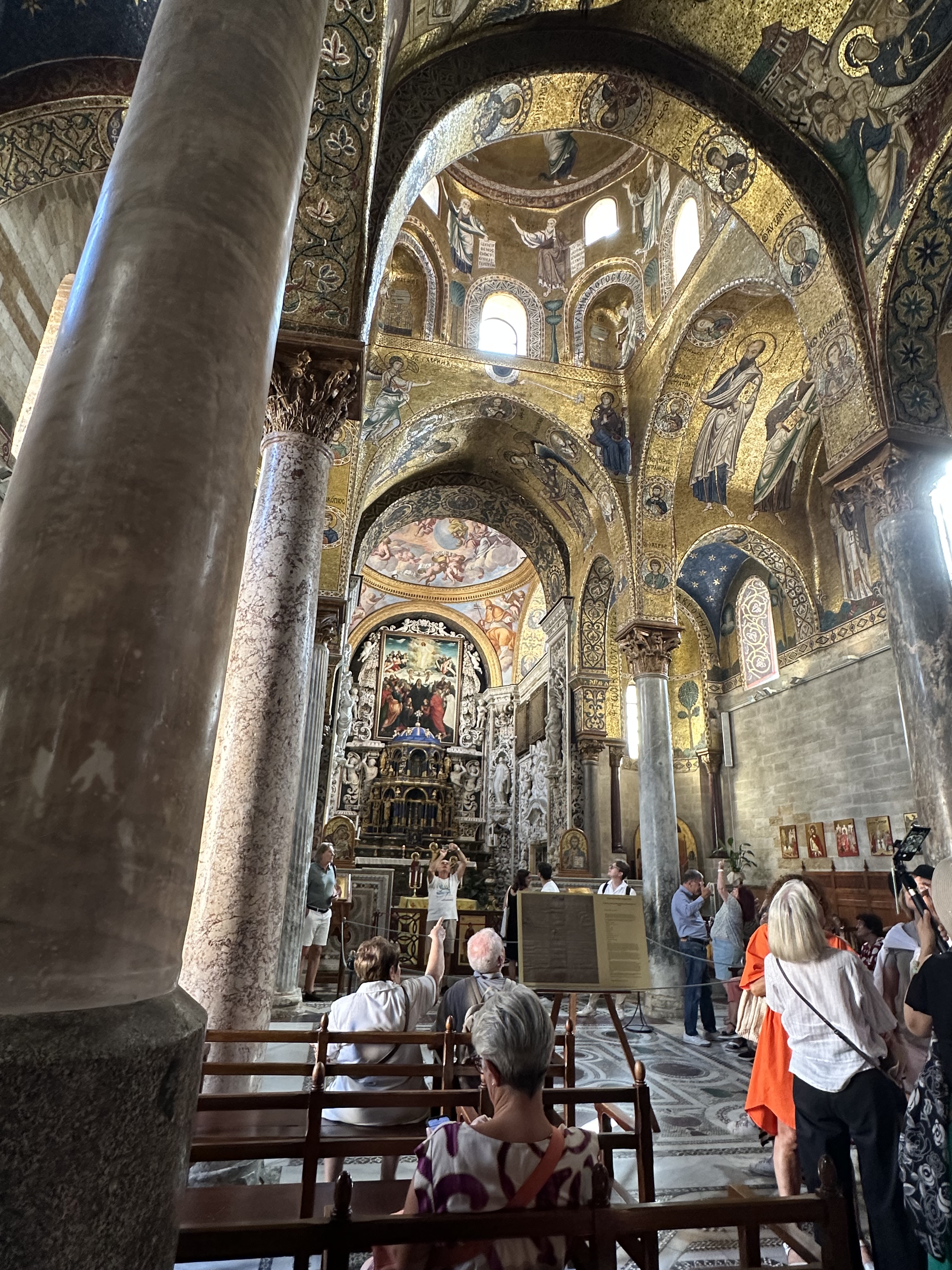 We all continued up hill to the cathedral, which was lovely to see and visit and then, at 2pm, we converge on Ciccio Sultan Duomo, the Michelin 2-Star restaurant Terry had booked us into for a 3-course lunch. We took up the entire placed sitting in overly padded, all white chairs in 2 all white rooms. The wine flowed freely, and everyone became quite jovial. It was a delightful afternoon with wonderful, delicious food.