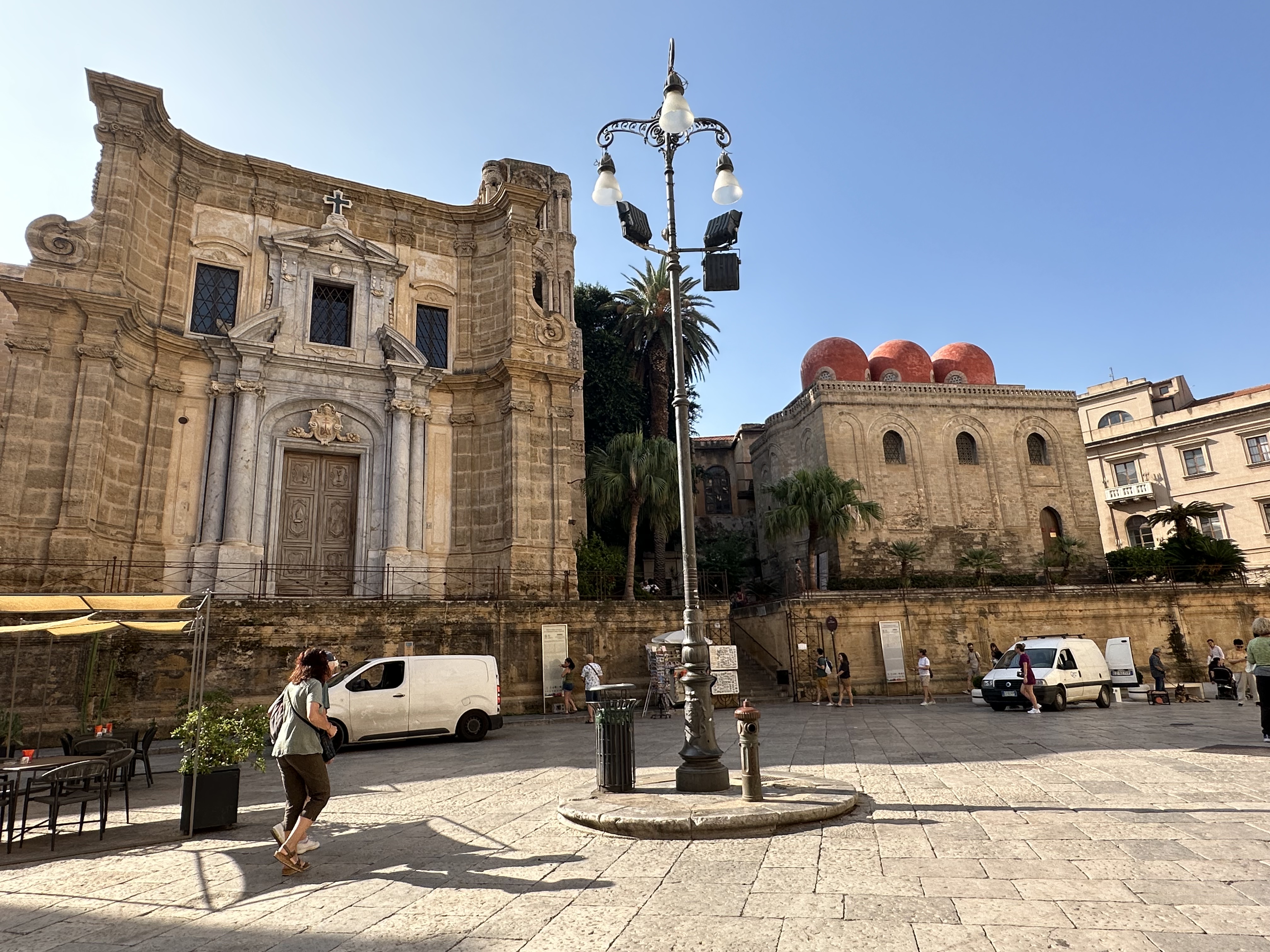 As everyone was booked for the lunch, we all carpooled and enjoyed the scenic drive to Ragusa. Parking was a bit of an issue for some, but eventually we all got parked and met up in the town. The beginning was a lovely garden at the bottom of the rather steep hillside town. After walking around the garden, we slowly walked up hill passing more shops, and trinket stores.