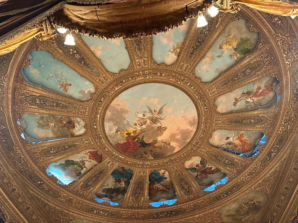 Entrance to the palaceCurrent owner of the palaceFamily alter with many relicsFormal dining roomCeiling in the Ball RoomLynne, Julia and Al at the window to the CathedralThe Cathedral view behind Julia and LizThe Ball Room